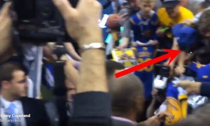 Twitter/Brittany Copeland Prior to the Golden State Warriors’ game in Utah on Wednesday, several fans fell from the stands as they were...