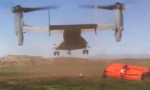The MV-22 donned a Bambi bucket and put on a water dropping demonstration at Hemet-Ryan Airport in February for California Department of...