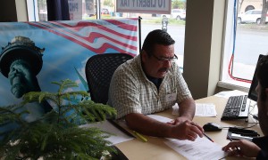 Justin Sullivan/Getty ImagesTax preparer Robert Romero (L) helps a customer prepare his income taxes at Liberty Tax Service on April 14, 2014...