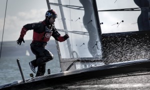 Land Rover BARTeam principal and skipper Sir Ben Ainslie in motion aboard his team’s current boat, the T2. Because of the very...