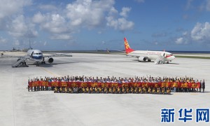 China’s state backed Xinhua News has posted pictures of aircraft operating from the country’s reclaimed island outpost at Fiery Cross Reef in...