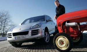 [The lovely Porsche-hauling Porsche Cayenne wasn’t Porsche’s first off-roader. Look at that sweet tractor in front of racing legend Walter Röhrl. Of...
