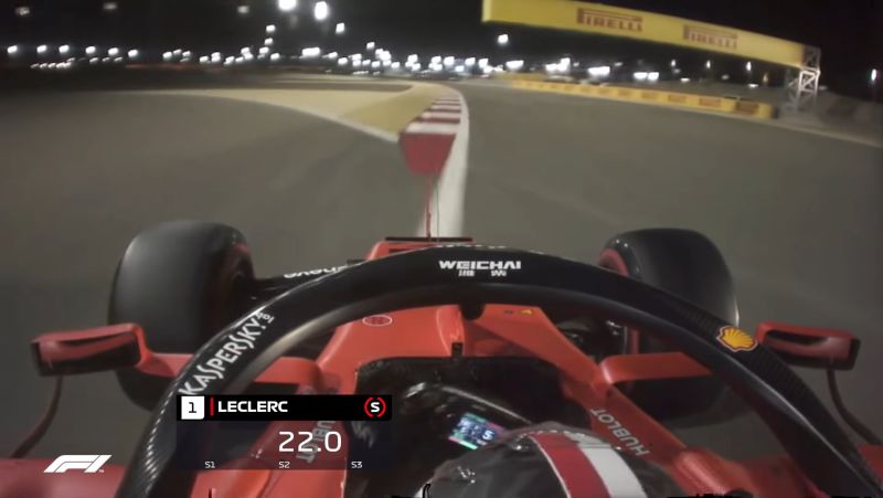 Formula One’s annual run at Bahrain under the lights is a spectacle to behold. Just watch this gorgeous onboard from Charles Leclerc’s pole lap yesterday, and you’ll see what I mean. The thousands of light poles, both on the track and around it, make the Ferrari feel like it’s part of a Star Wars film, jumping from system to system with the bright lights of thousands of distant suns streaking by.