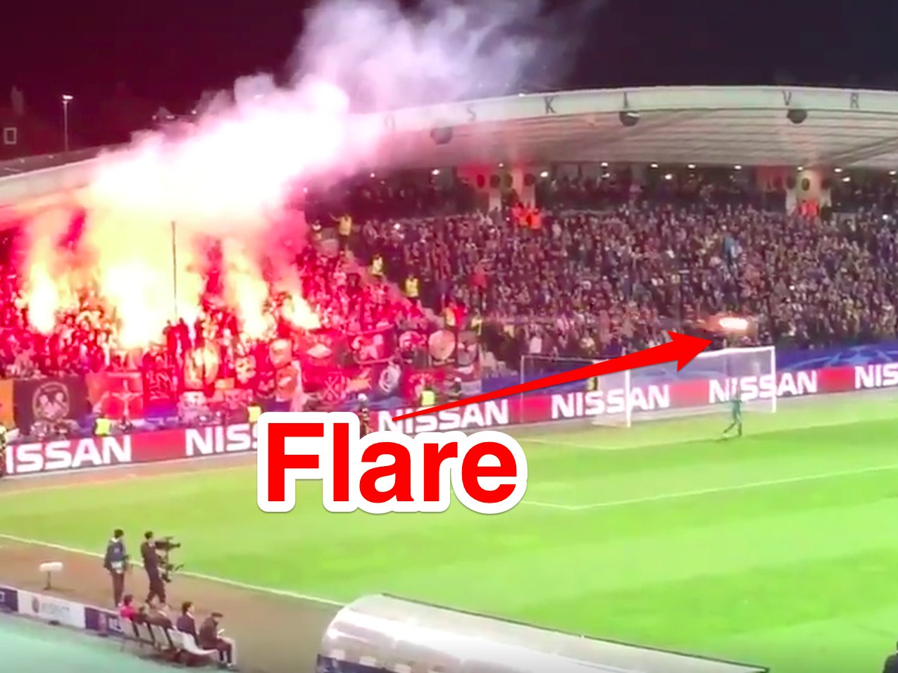 The flare was not the only incident of crowd trouble as visiting fans also clashed with local police before kick-off, according to a report on the BBC.