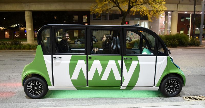 May Mobility shuttles currently operate in Detroit, Columbus, and Providence. Unlike Waymo’s driverless taxis in Arizona, the May machines require an operator to be at the helm for the duration of the ride.