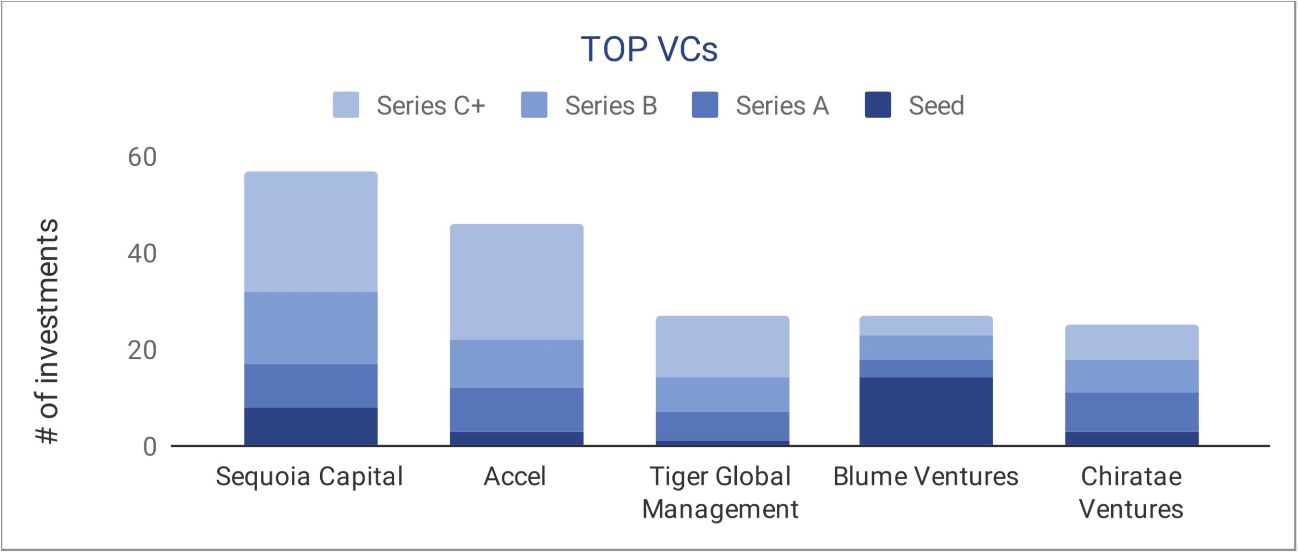 Top VC firms in India last year based on the number of investments they made. Image Credits: InnoVen