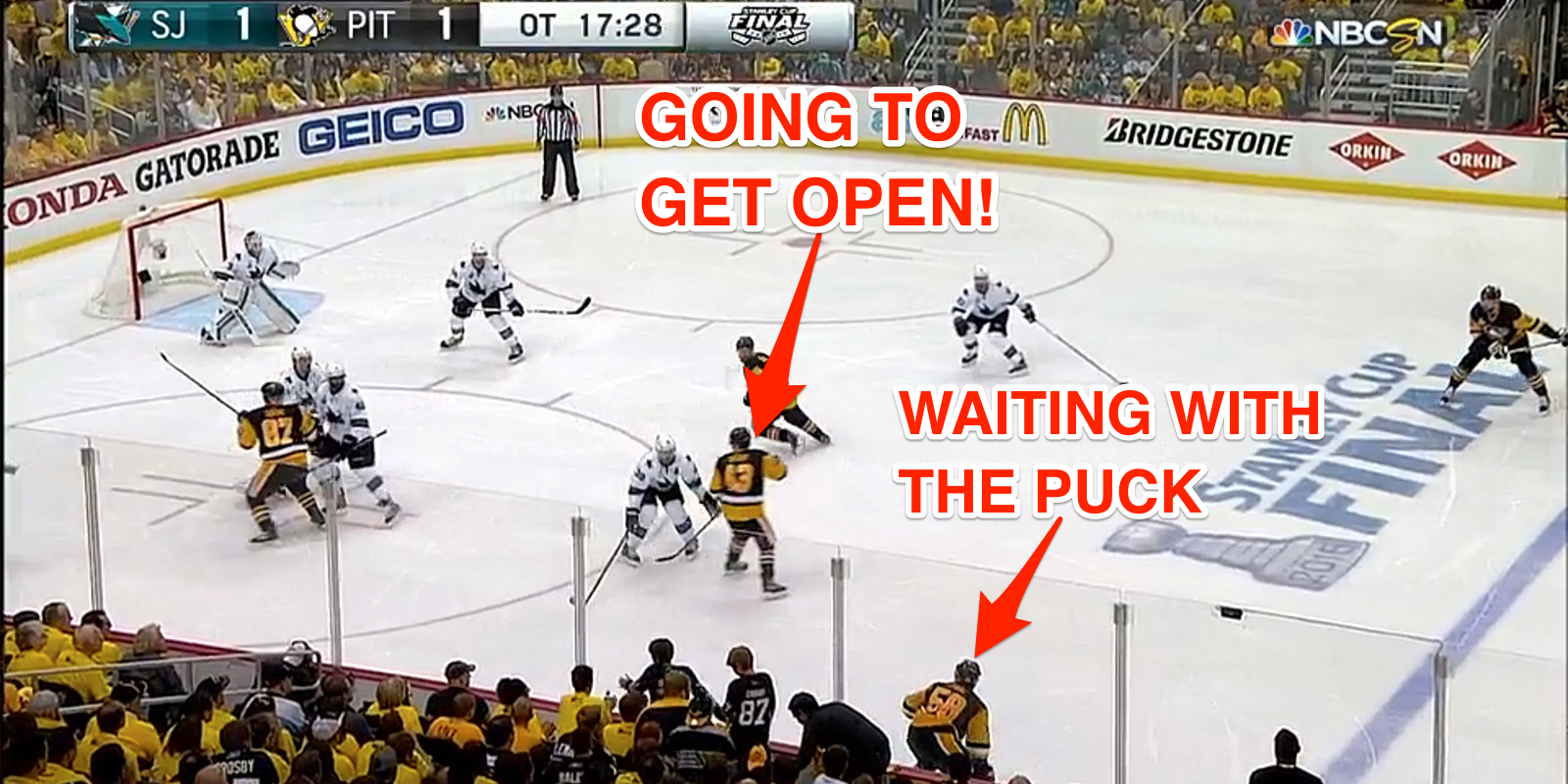 The game-winning goal came from rookie Conor Sheary on a dead-on shot from the zone that hit the upper right-hand side of the goal. However, the play and gorgeous shot might not have been possible without help from Sidney Crosby and his masterful play design.
