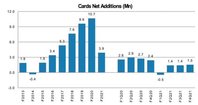 New credit card additions in India. Data: Reserve Bank of India, Morgan Stanley. Image: Morgan Stanley