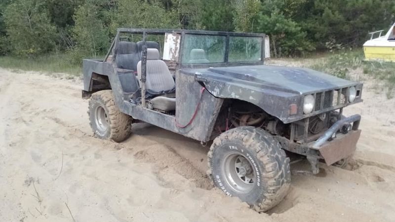 According to for sale-post’s description, the vehicle was initially planned as a dune-basher (likely for Silver Lake sand dunes in Michigan, two hours from where this thing sits in Saranac).
