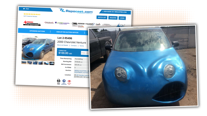 A Chevy Venture is, let’s face it, a deeply, deeply boring car. But, speaking of facing things, consider this: maybe it’s a fantastic car, if only the front end were replaced with a gigantic, snarling face? Didn’t think of that, did you? Well, someone did, and then got their Snarlventure repo’d, which means this masterpiece can be yours. Hot damn.