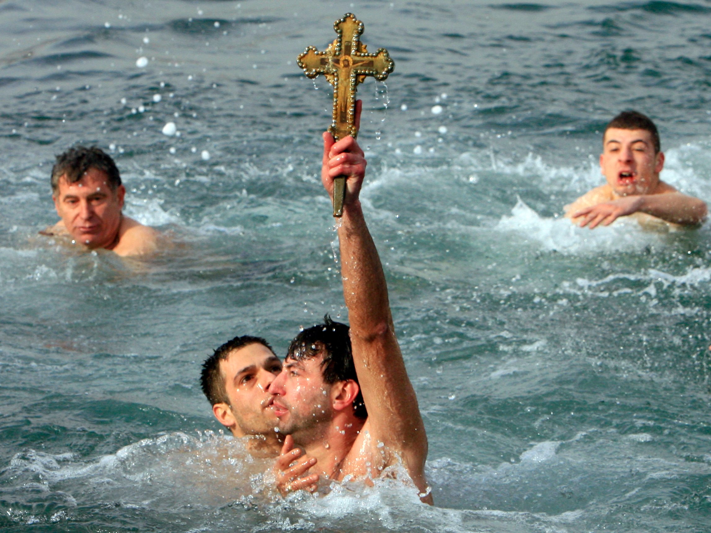 Osman Orsal/ReutersGeorge Goutzioudis, a Greek Orthodox, retrieves a wooden crucifix as he swims in the Golden Horn in Istanbul on January 6, 2008.