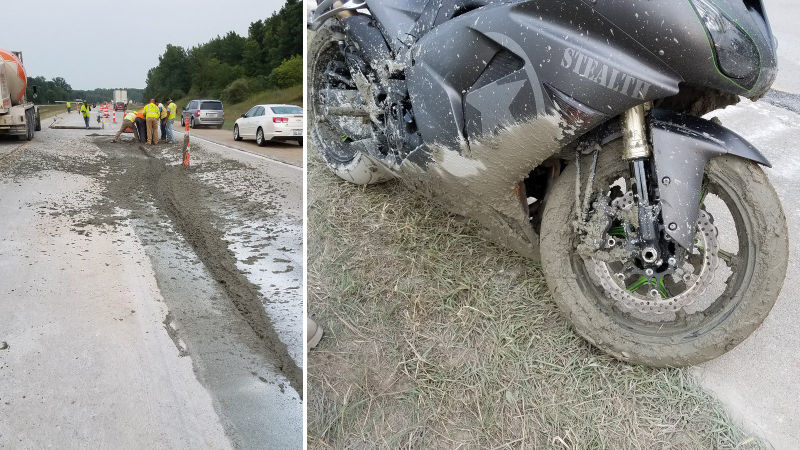 That’s exactly what happened to this Kawasaki owner, who apparently rode into a construction zone where workers were curing some concrete and got their bike (which hilariously has “STEALTH” written on it!!) stuck. More hilariously, it seems like they then left the scene of the mess, because the Michigan Department of Transportation took to Twitter and asked if anyone had lost a bike.