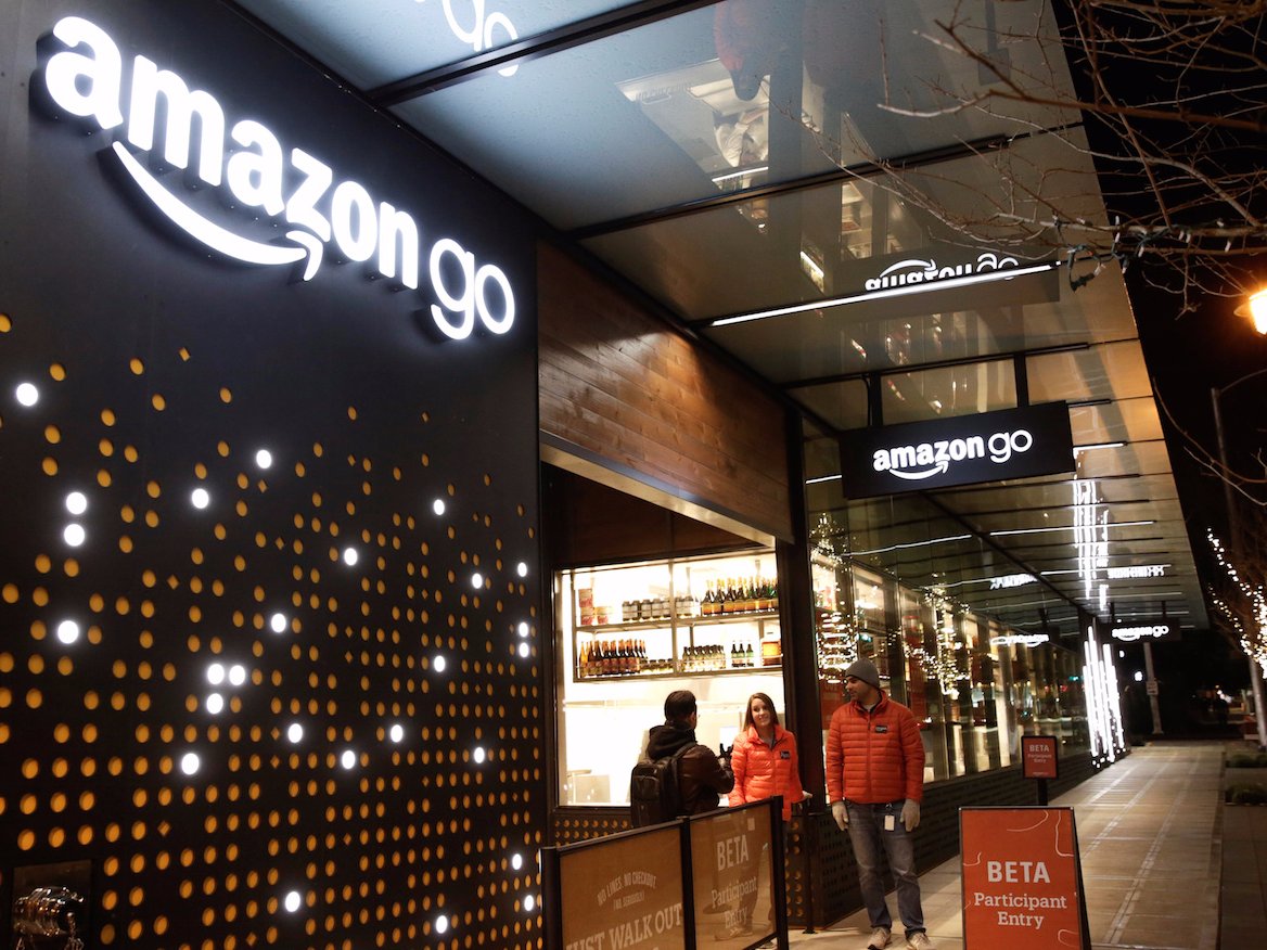 Amazon employees are pictured outside the Amazon Go brick-and-mortar grocery store without lines or checkout counters, in Seattle Washington, U.S. December 5, 2016.REUTERS/Jason Redmond
