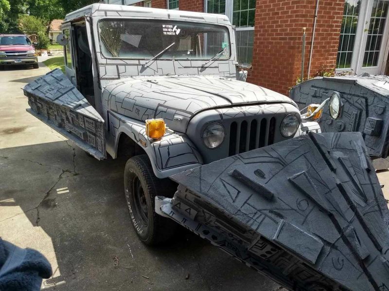 A group of geniuses in Texas converted a Jeep DJ-5M Dispatcher mail Jeep into a Star Destroyer, and built a fleet of other Star Wars-themed vehicles to drive along with it. Just. Wow.