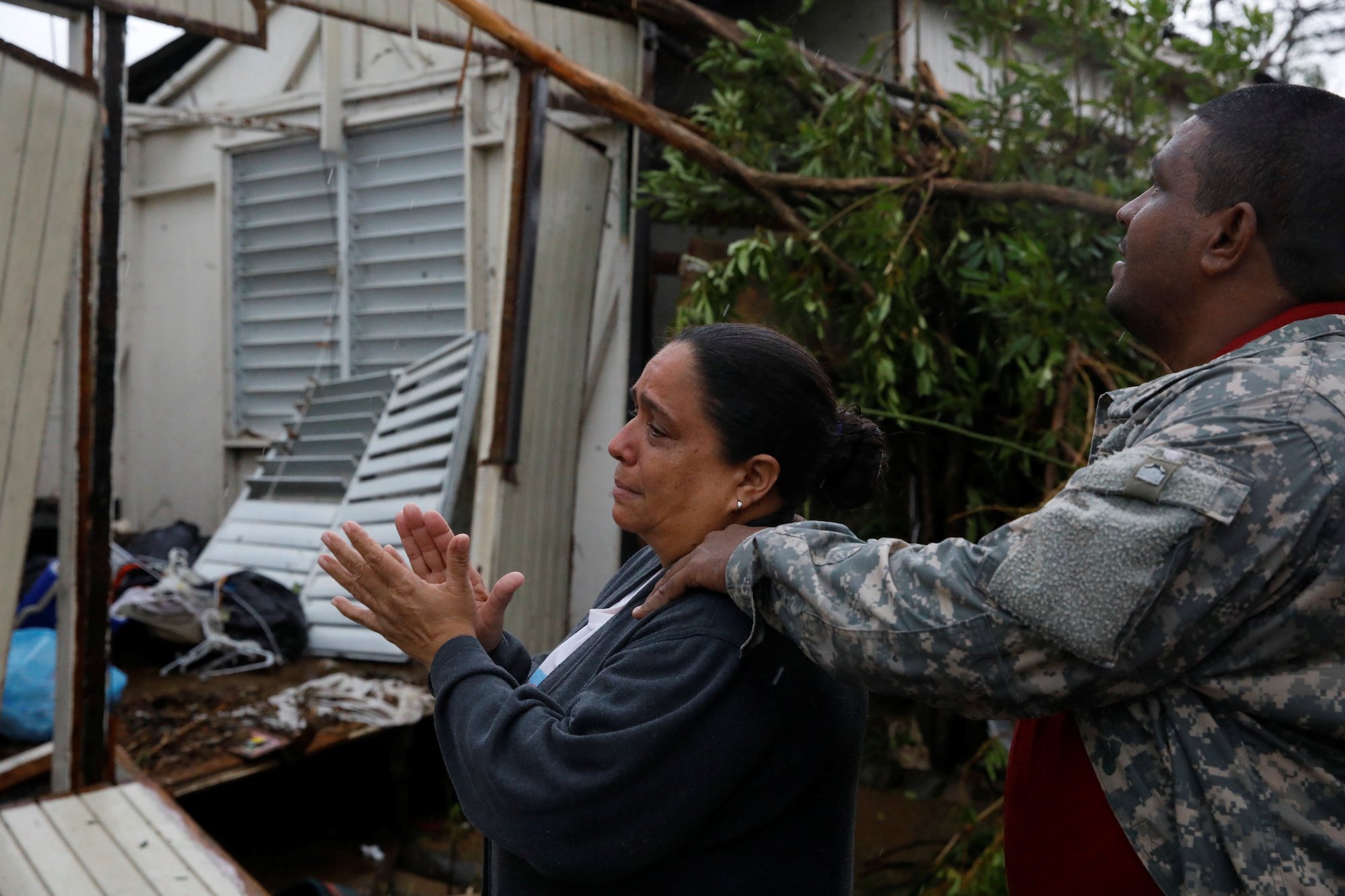A woman reacts while she looks at the damages in the house of her mother after the area was hit by Hurricane Maria in Guayama, Puerto Rico September 20, 2017.REUTERS/Carlos Garcia Rawlins