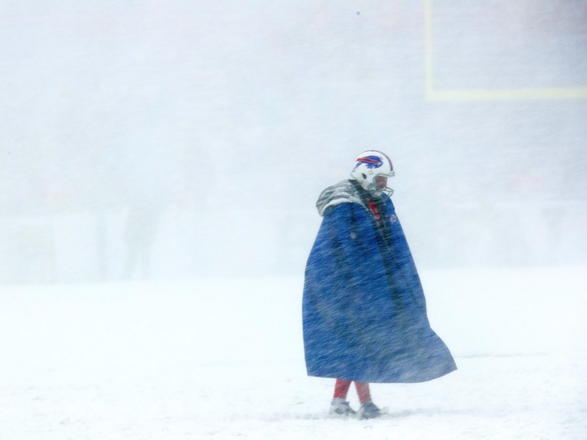 Buffalo, New York, reportedly received up to 17 inches of snow, and despite the field crew’s efforts to clear the snow beforehand, it kept on coming down during the game.