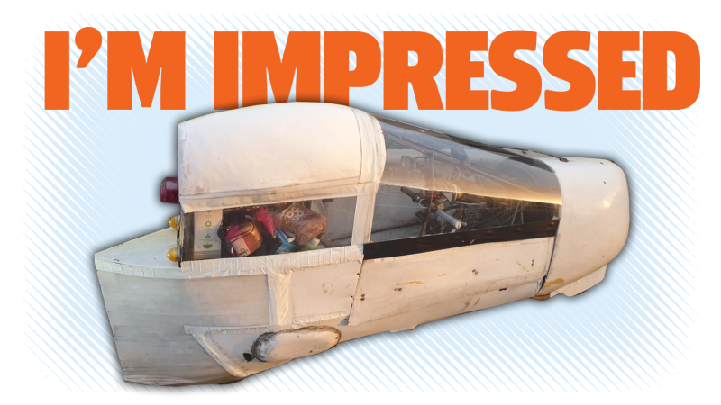 Plus, I’m impressed with the cast-iron nuggets of anyone willing to drive something made of balsa wood and tape on a major highway; that’s no joke.