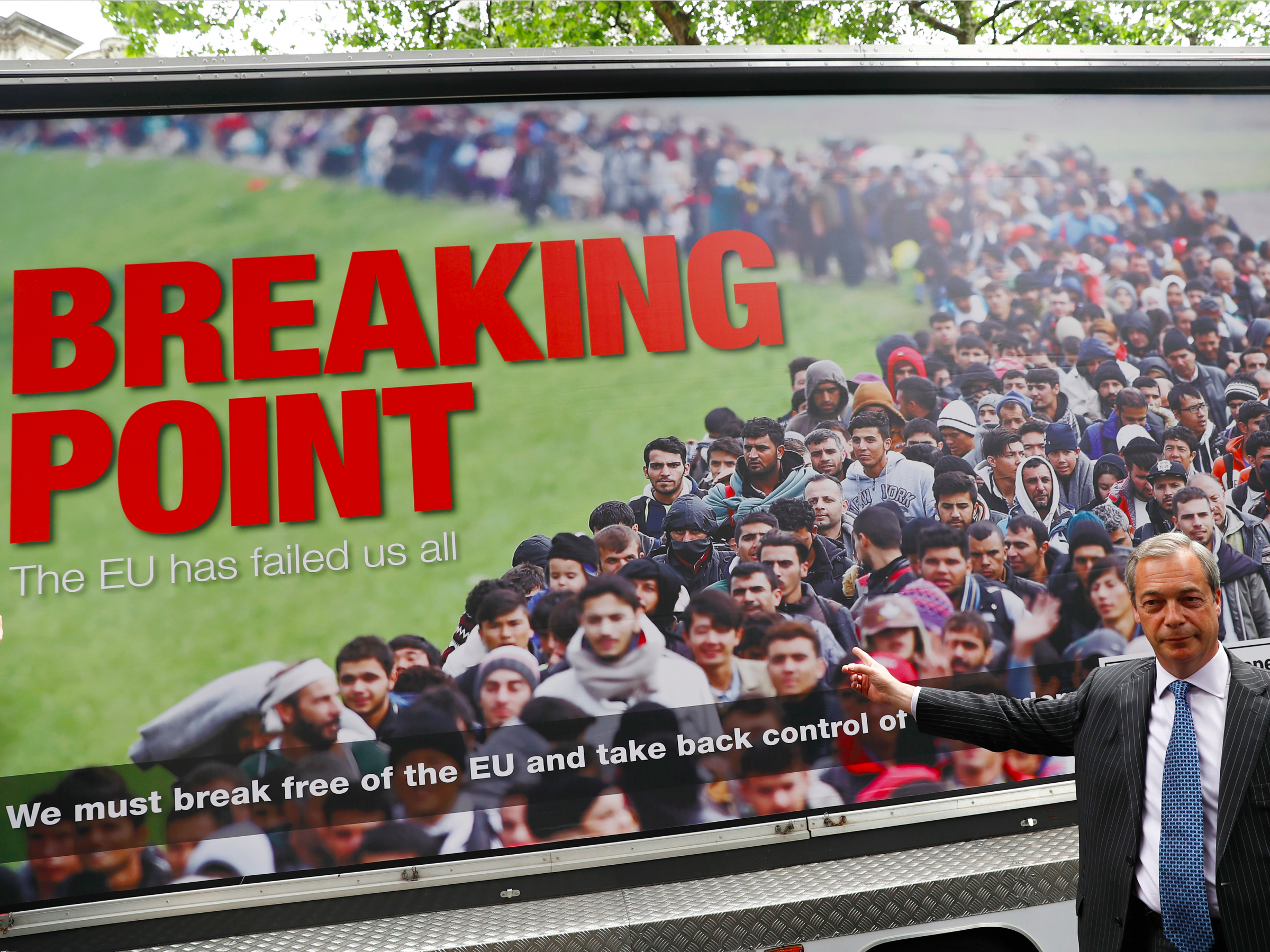 Former UKIP leader Nigel Farage with the party’s now infamous pre-Brexit billboard.REUTERS/Stefan Wermuth