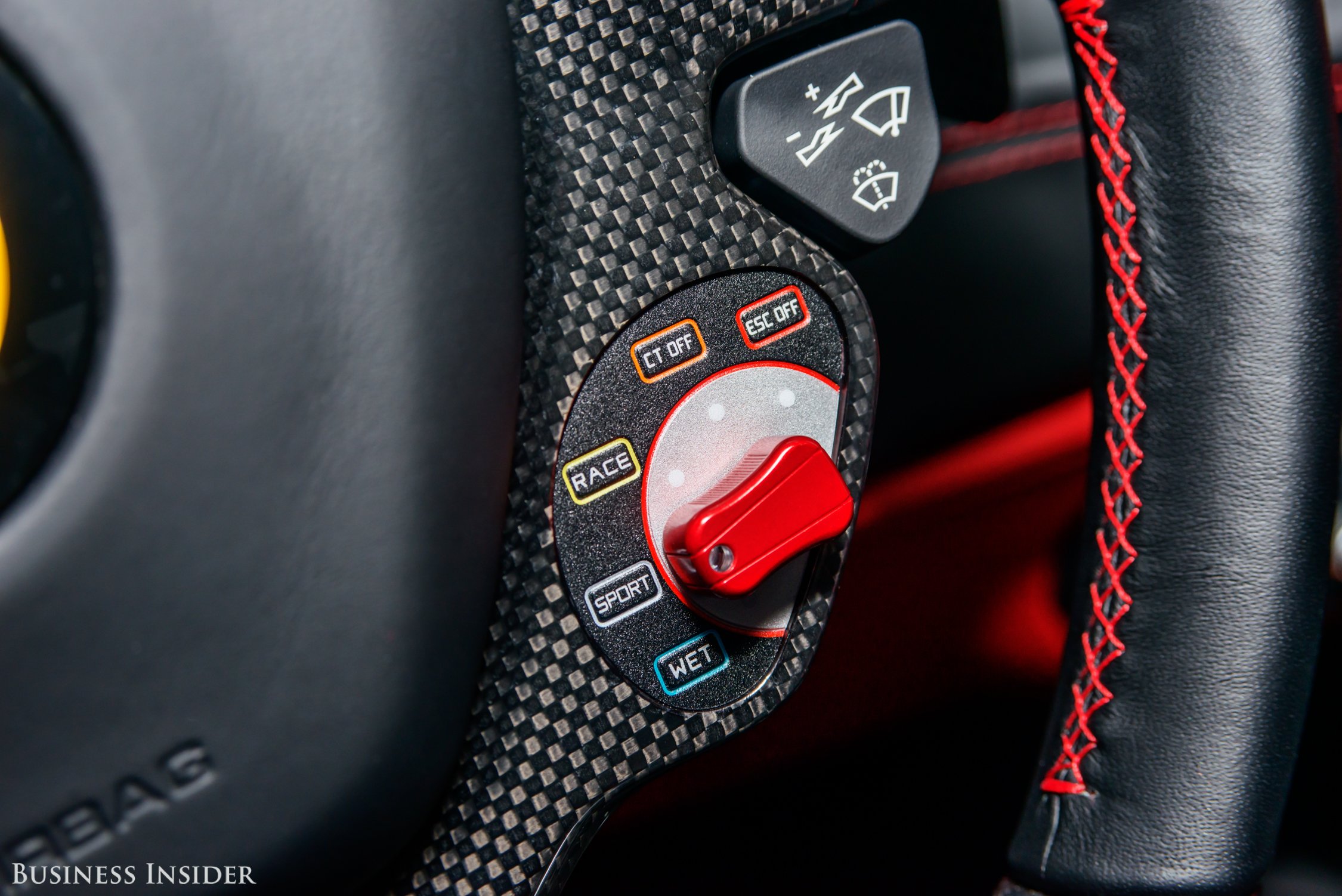 Despite the engine change, plenty of well-known Ferrari features remain. Notably, a small red switch on the steering wheel — the “manettino.”