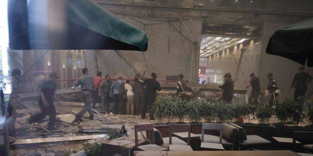 Local station MetroTV showed footage of people running out of the building and some people lying on the ground near the entrance.