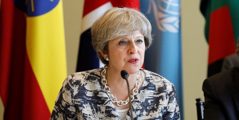 British Prime Minister Theresa May speaks during a meeting on action to end modern slavery and human trafficking on the sidelines of the 72nd United Nations General Assembly at U.N. Headquarters in New York.Thomson Reuters