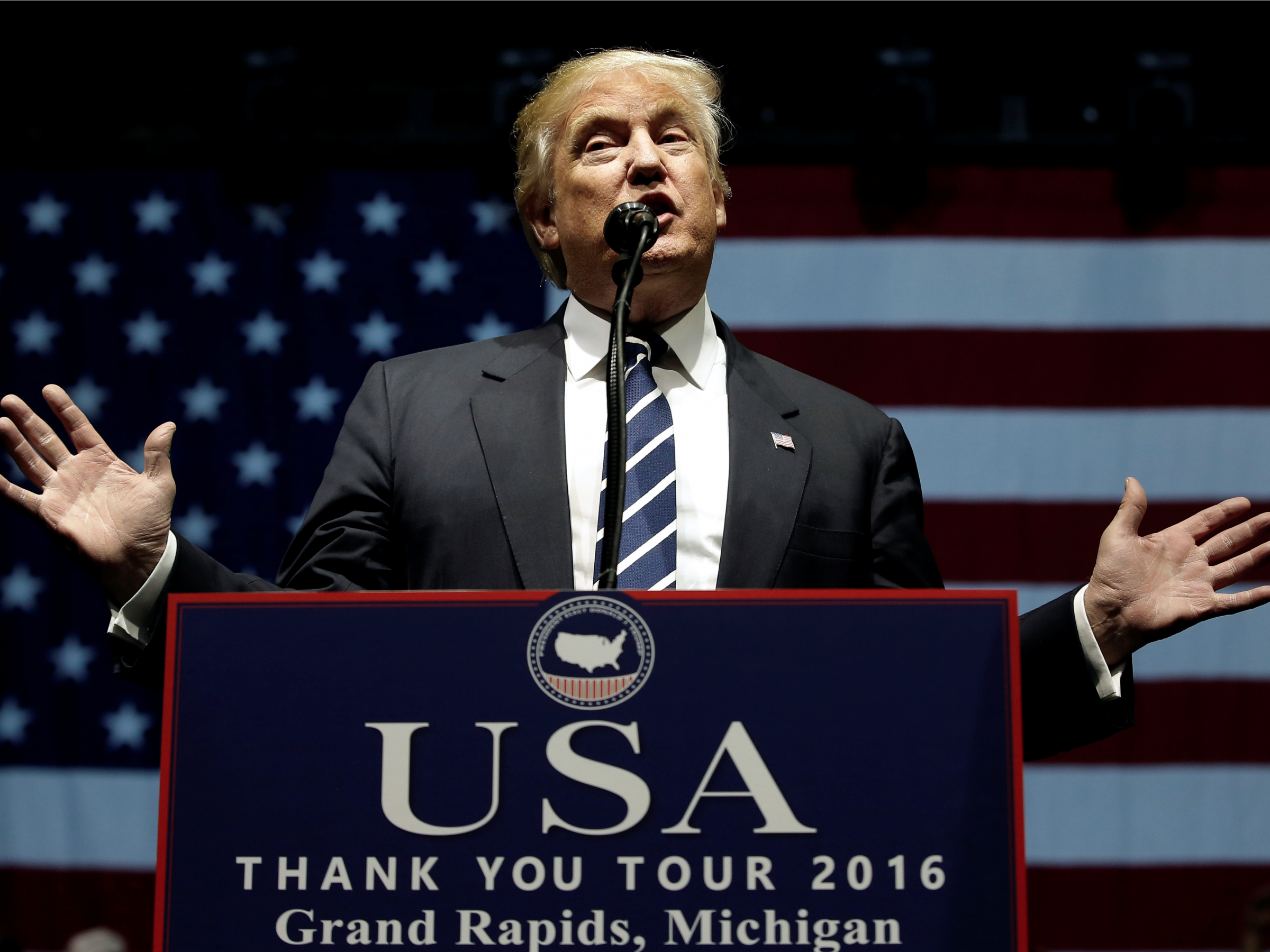 Donald Trump speaks at a “Thank You USA” tour rally in Grand Rapids, Michigan, U.S. December 9, 2016.REUTERS/Mike Segar