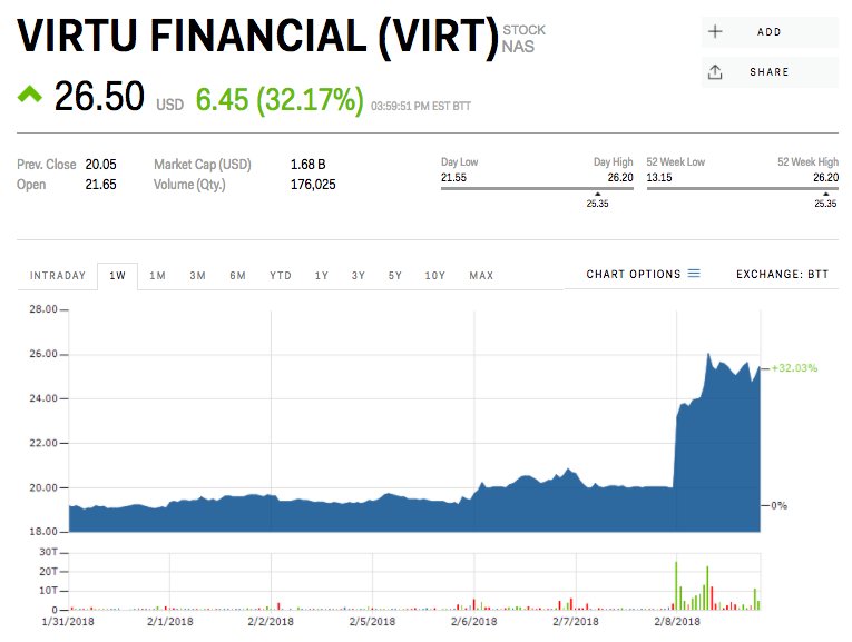 These market conditions are a blessing for firms like Virtu. And that’s been reflected in its stock price, which is up more than 38% since the beginning of the week.