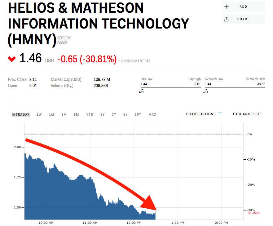 HMNY shares are now 95% below their October all-time high of $32.90, hit shortly after the company acquired MoviePass.
