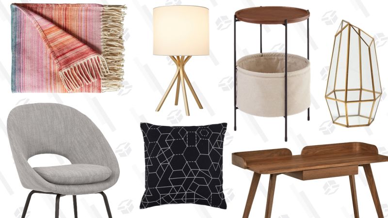 23 products are included in this sale, including trendy end tables, wood and iron shelves, hip-again orb chairs, and a bunch of lamps, pillows and throw blankets, just for starters. For all of the deals, be sure to head over to Amazon.