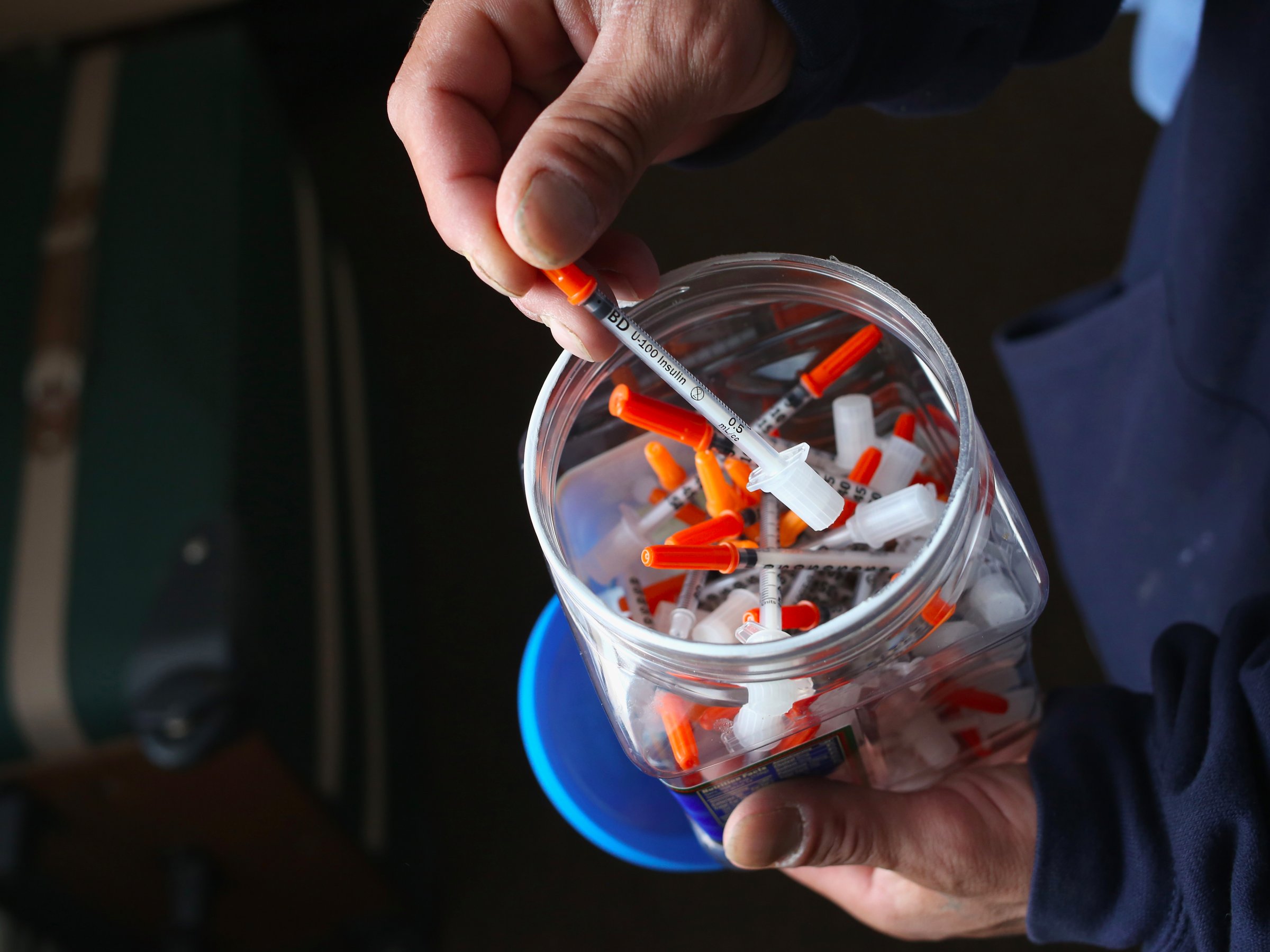 A drug user takes a needle before injecting himself with heroin on March 23, 2016 in New London, CT. Communities throughout New England and nationwide are struggling with the unprecidented heroin and opioid pain pill epidemic. On March 15, the U.S. Centers for Disease Control (CDC), announced guidelines for doctors to reduce the amount of opioid painkillers prescribed nationwide, in an effort to curb the epidemic. The CDC estimates that most new heroin addicts first became hooked on prescription pain medication before graduating to heroin, which is stronger and cheaper.John Moore/Getty Images