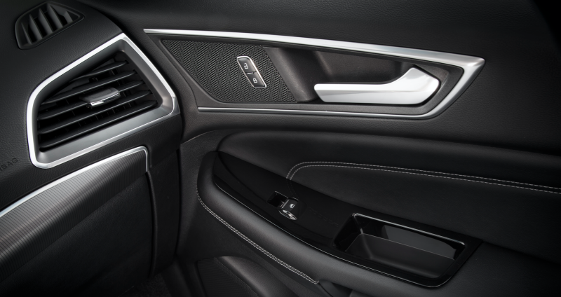 The interior of the 2015 Ford Edge, one of the vehicles the National Insurance Crime Bureau said was vulnerable to this strange hacking device. Image via Ford
