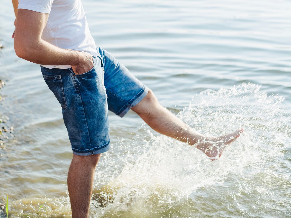 If you’re a die-hard wearer of jean shorts, we understand that this might be hard to hear. For those men, we offer a compromise: chambray. This is a denim-like fabric that is much lighter and can be worn without fear of ridicule. Gap sells a pair for $45.