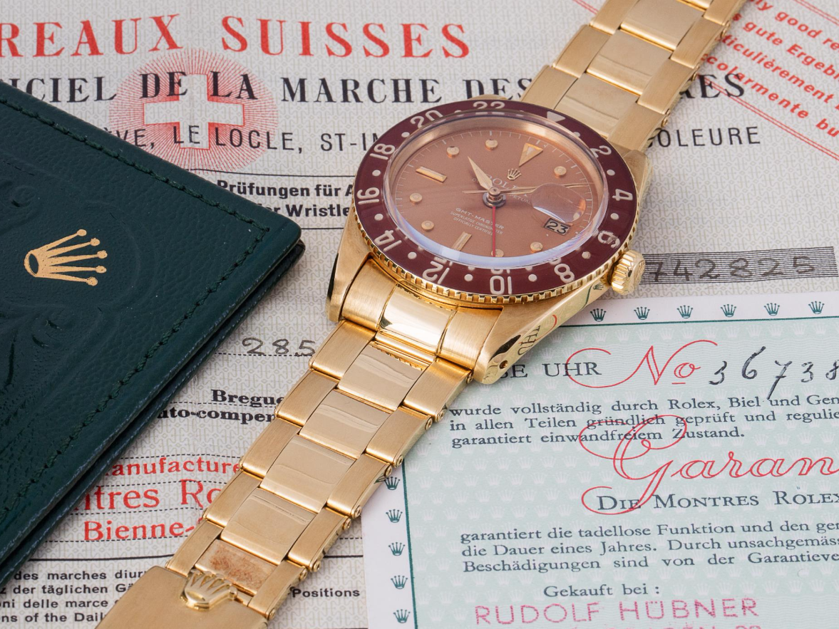 According to the auction house, this watch is especially noteworthy because it is the best preserved version of the watch in gold, and it’s an example of “breathtaking condition and beauty.” Gold GMT Master watches are rare, as Rolex more commonly makes them in stainless steel.