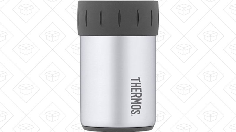 Thermos’s stainless steel can insulator uses vacuum insulation and thick walls to actually provide a barrier between your beverage and the outside world. They go so far as to claim that it will keep a can cold for up to 3 hours, and even if that’s a little bit of marketing hyperbole, what could possibly be in that can that takes more than an hour to drink?