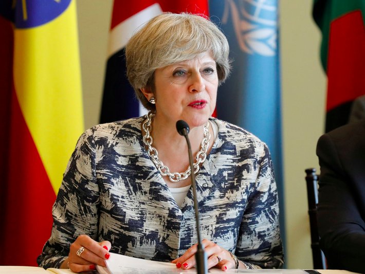 British Prime Minister Theresa May speaks during a meeting on action to end modern slavery and human trafficking on the sidelines of the 72nd United Nations General Assembly at U.N. Headquarters in New York.Thomson Reuters