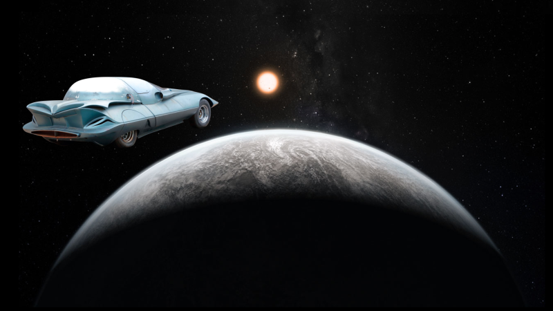 “Those were more hopeful times on that planet,” they’ll say, thinking of their ancestors’ difficult journey of survival on a first-class spaceship with regular cabin service out of the solar system, “the day the Space Corvette left Earth.”