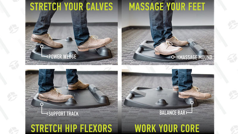 Most of these mats are flat slabs of foam, and that’s better than nothing. But what if you could do more with your feet than just balance on them? That’s the idea behind TerraMat, which is essentially a fidget toy for your feet. In the middle, you can stand on it like a normal mat. But off to the sides, you’ll find massage mounds. On the front, a balance bar and “pressure peaks.” On the back, there’s a power wedge to stretch your calves. Surrounding it all is a support track to help you stretch your hip flexors. Basically, it gives your feet things to do while the rest of your body is busy filling out spreadsheets or whatever.