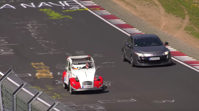 The one time I participated in an open track day, I noticed that most of the people there rolled up in stripped out Miatas and S2000s. These are great cars and utterly capable track-day toys, but I did find myself wanting to see some more variety. As always, the Nürburgring is here to answer my prayers.