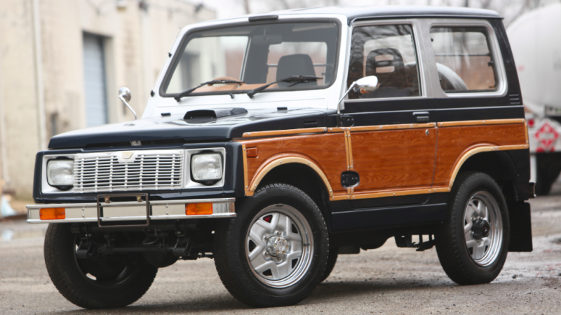 An old-school boxy Suzuki Jimny kei-car is a cool thing all on its own, but if you slap some Jeep Grand Wagoneer-esque vinyl wood trim on the sheetmetal and bolt on a bit of chrome, well, that brings it to the next level. That’s why this one for sale right now, with a top bid currently at only $900, has me deeply intrigued.