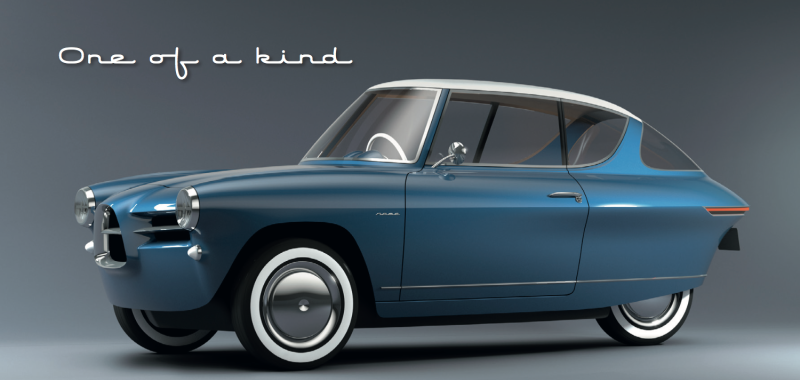 The rear quarter windows and greenhouse profile sort of remind me of a Studebaker Avanti, and from above the tail-dragging three-wheel design and overall teardrop shape with the open roof remind me a bit of a Messerschmitt Kabinenroller. There’s a lot of design references going on here, but overall I think it manages to work together.