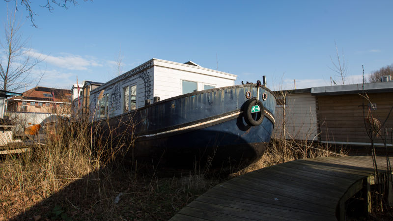 AMSTERDAM—Walking into De Ceuvel feels a bit like walking into a post-apocalyptic utopia. A dozen or so houseboats litter the ground around a gathering place, where a rusted hull has been cut in half and converted into benches. Slanted solar panels pepper the rooftops of structures built out of recycled materials, all of which are overlooked by an elevated greenhouse. Just north of central Amsterdam, this shared work space is an experiment in how to take an entire community off the grid. It’s beautiful.