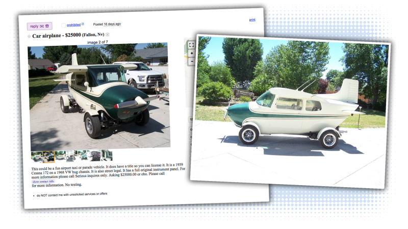 If you’re trying to buy a rear-engined, aerodynamic, aluminum-bodied car for new Camry money, you don’t really have many options. That’s why this ad should be such a godsend to the significant portion of our readership finding themselves in this situation: it’s a rear-engined, aerodynamic, aluminum, and absolutely unique car, all for $25,000. It’s also a Beetle chassis with an airplane stuck on top of it.