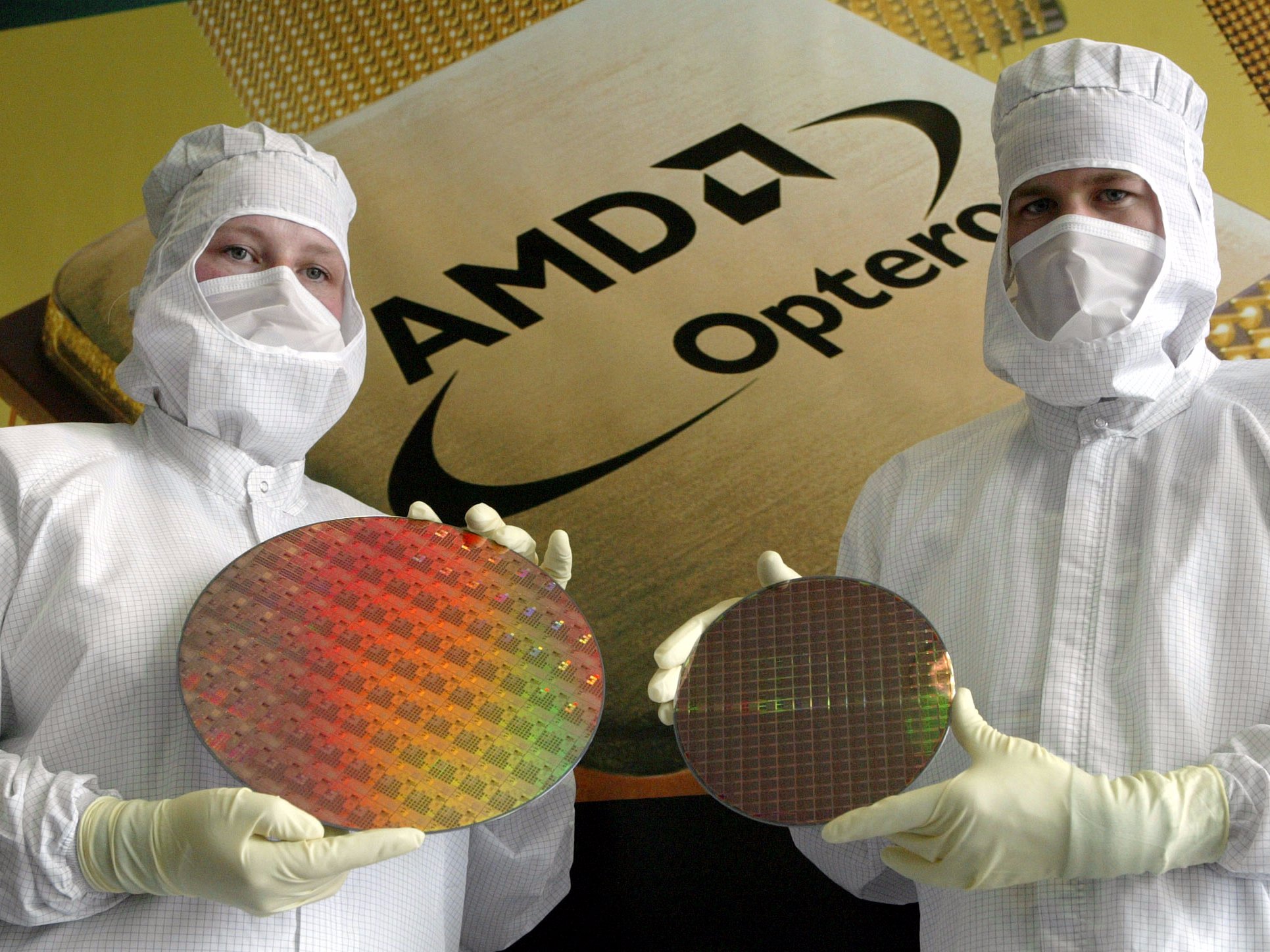 Technicians of AMD, the world’s second-largest maker of computer microprocessors after Intel Corp, display wafers for the media in the eastern German city of Dresden.Reuters/Arnd WiegmannBetting against AMD this year has been unprofitable, but that’s not stopping investors from jumping on the trade.