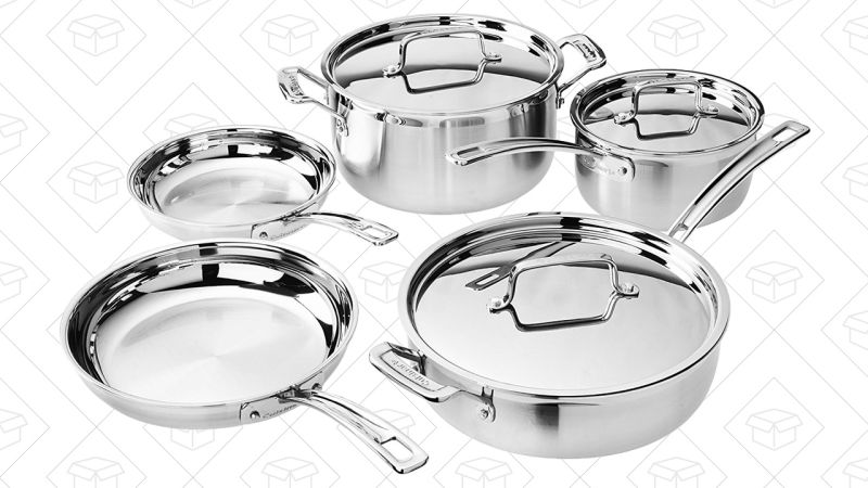 Like All-Clad, all of these pans are built with a tri-ply steel-aluminum-steel construction, which ensures durability, a non-reactive cooking surface, and fast, even heating. This set has pretty much every pan most home chefs need for basic food prep for just $140, but I suspect it will sell out quickly, so don’t let this deal overcook.