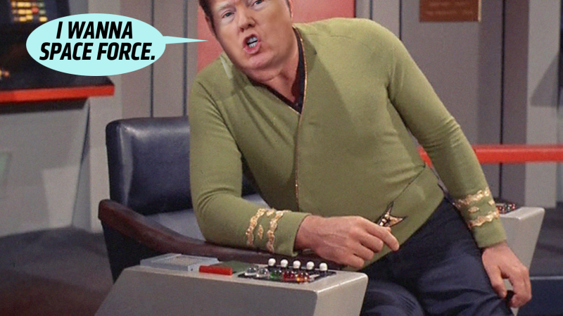 Back in March, President Trump pulled the idea of a “Space Force” out of his well-seasoned anus and thought it was a fantastic idea. Funadamentally, it’s not a bad idea at all, and I know this because we’ve effectively had a Space Force for decades, even if it hasn’t been called exactly that. Now, he’s directed the Department of Defense to create a “Space Force” as a sixth military branch.