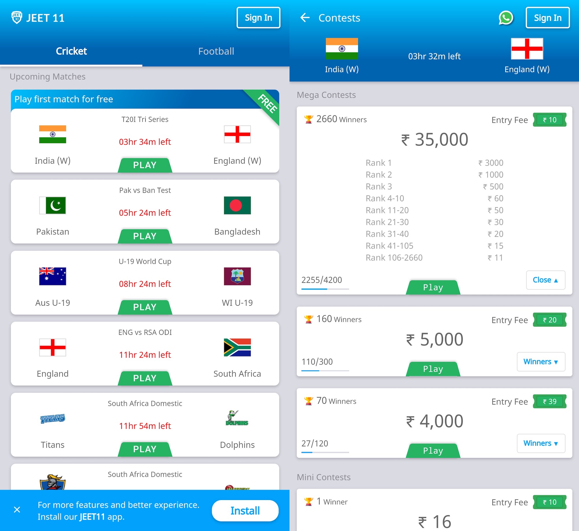 Jeet11 is not available for download on the Google Play Store due to the Android maker’s guidelines on betting apps, so ShareChat has been distributing it through Xiaomi’s GetApps app store and the Jeet11 website, and has been promoting it on Instagram. It is also available as a web app.