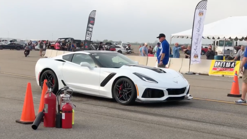 The page said the ZR1 was completely stock, but it also doesn’t look as mean as you’d expect. That’s because after some slower mile runs, the group with the ZR1 decided to peel off the wing that comes on the car for extra track downforce.