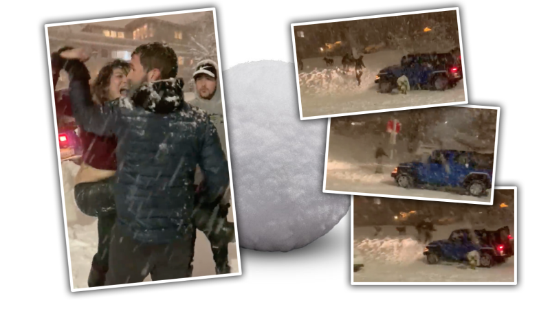 It’s not clear if the snowball impact was intentional, or just an accidental impact from driving through a snowball battle-zone.