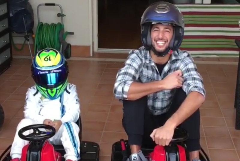 Daniel Ricciardo, respected Formula 1 driver for Red Bull Racing, was caught on video losing a carting race to Williams Racing Felipe Massa’s son. How unfortunate.
