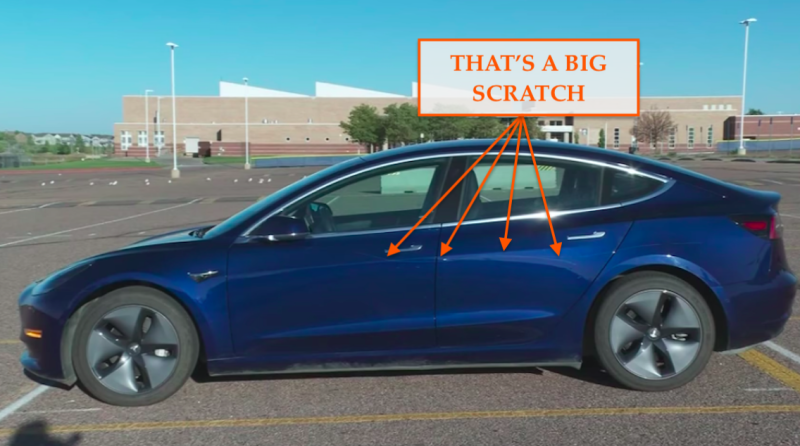 You can feel down to bare metal and you can see it’s scratched all the way completely through the paint,